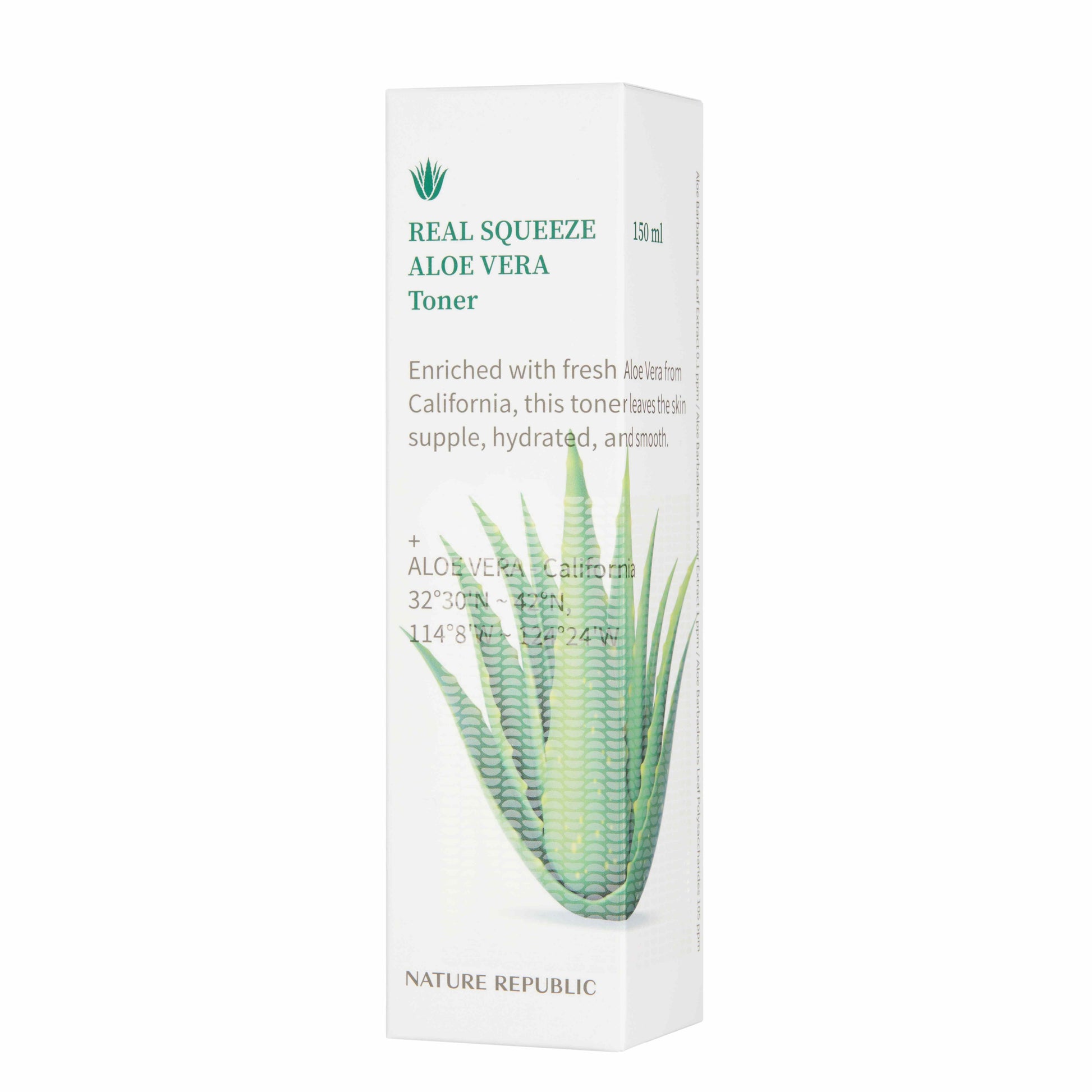 Der Real Squeeze Aloe Vera Toner von Nature Republic ist eine feuchtigkeitsspendende und beruhigende Gesichtspflege, die mit hochkonzentrierter 200:1 Kalifornischer Aloe Vera angereichert ist. Seine leichte, erfrischende Textur zieht schnell ein und sorgt für ein ausgeglichenes Hautgefühl. Dieser Toner spendet nicht nur intensive Feuchtigkeit, sondern hilft auch, die Haut nach der Reinigung zu beruhigen und auf die nachfolgende Pflege vorzubereiten.